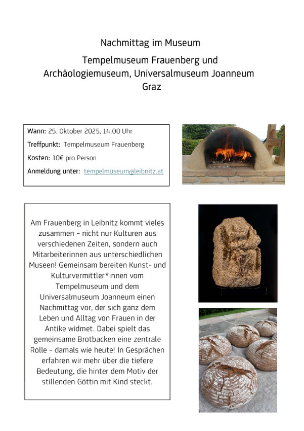 25. Oktober 2025: 14:00 Uhr Nachmittagsveranstaltung mit Brotbacken - Tempelmuseum/Joanneum Graz