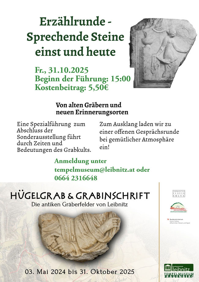 Auskünfte/Anmeldung Führungen: Marlene Weinzettl +43(0)664/2316648 oder tempelmuseum@leibnitz.at